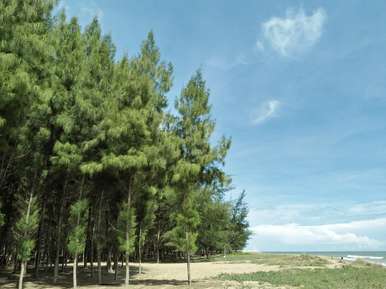 Digelar sebagai “Nami Island Malaysia”, pantai ini terkenal dengan deretan pokok ru yang tersusun rapi, menjadikannya lokasi fotografi yang viral di media sosial.